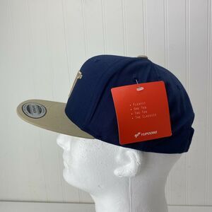 CATERPILLAR Diesel Navy Blue 6 Panel Snapback Hat Tan Embroidered CAT Logo