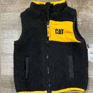 CATERPILLAR FLEECE Black Yellow Pocket full zipper VEST outerwear New SIZE 6