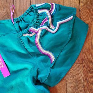 Feel party-ready in this lightweight blouse styled with sweet, double-ruffled sleeves enlivened with beautiful, vibrant embroidery.