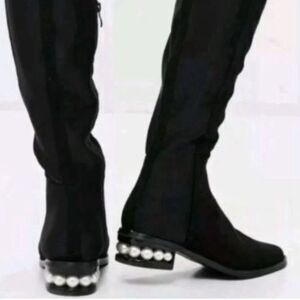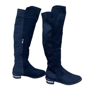 CATHERINE MALANDRINO Black Vegan Suede Over the Knee Pearl Heel Boot 7.5