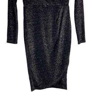 CATHERINE MALANDRINO DISCO DIAMOND 70S STYLE LONG SLEEVE FAUX WRAP STRETCH DRESS