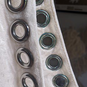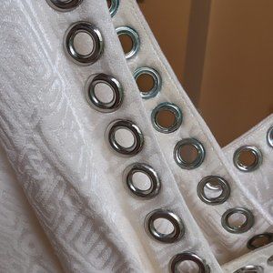 Materials: 100% silk outer shell, 100% polyester lining, metal grommets.
