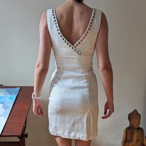 CATHERINE MALANDRINO White 100% Silk Grommet V Neck Cocktail Dress Size 4