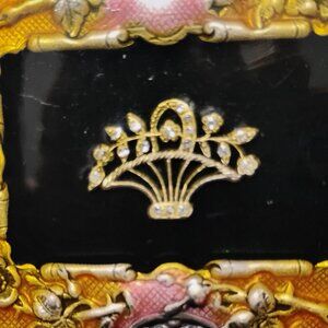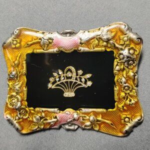Amazing Brooch with stunning enamel, floral and basket with Rhnestones.