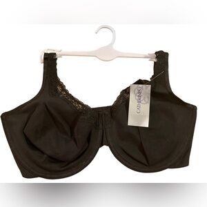 CATHERINES Bra 44DDD Solid Black Cotton Lace Trimmed Cups Never Worn NWT
