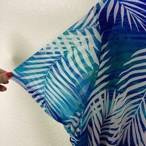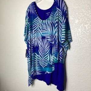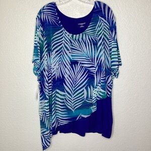 CATHERINES PLUS SIZE 3X 26 28 PETITE TOP BLUE TROPICAL BLOUSE BEACH VACATION