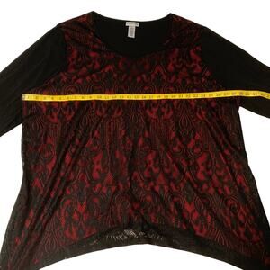 CATHERINES Top 3X 26/28W Black Lace Over Red Tunic Stretchy Goth Witchy Romantic