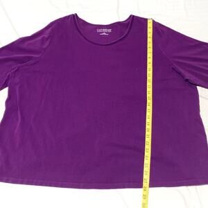 CATHERINES Top in size 3X with 3/4 Sleeves and Mesh Accent at Neckline. Suprema Collection. 26/28W. Dark plum purple, a little more plum than the photos show. Good pre-owned condition.