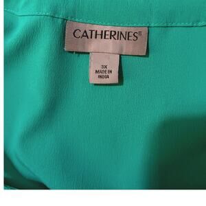 Add a pop of color to your wardrobe with this beautiful CATHERINES blouse! This plus-size 3X top features a flattering V-neck and a trendy asymmetric hem. The flowy design ensures a comfortable and stylish fit, perfect for both career settings and casual outings. The vibrant turquoise green color is sure to make a statement.