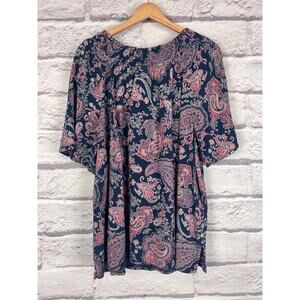CATHERINES Women's 2X Blue Ornate Paisley Tassel Boho Peasant Cottagecore Top