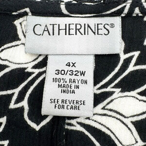 CATHERINES Women's 4X Black White Floral Button Up Shirt Crinkle Lightweight
