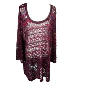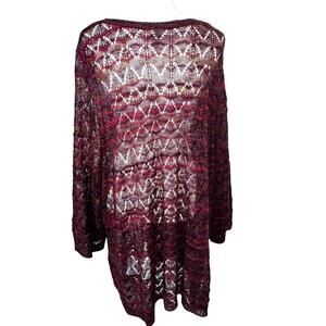 CATHERINES Women's 4X Pink Crochet Top 3/4 Sleeve Long Tunic Cover Up Sheer Boho