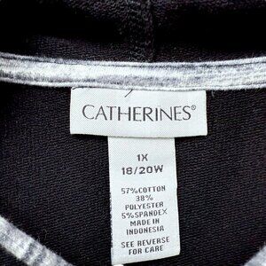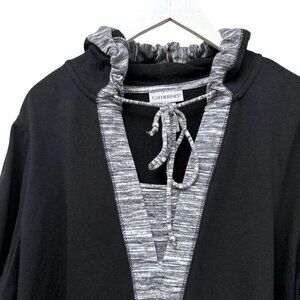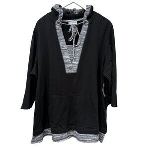 CATHERINE'S Womens Sweatshirt Plus Size 1X Black Gray Trim Hoodie 3/4 Sleeve NWT
