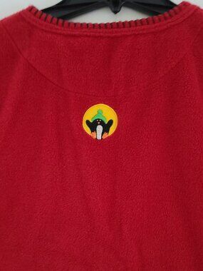 CATHY DANIELS RED FLEECE CHRISTMAS PULLOVER WITH PENGUINS SIZE L