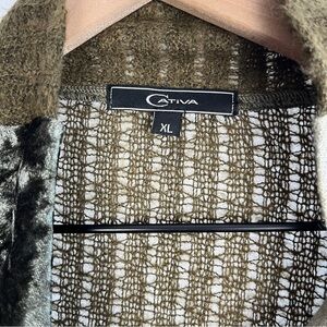 CATIVA Womens Multi-Pattern Pullover Sweater Olive Green Wool Blend XL Artsy