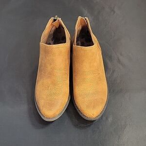 CAT&JACK BIG GIRLS SUEDE POINTED TOE BACK ZIPPER CLOSURE ANKLE BOOTIES SIZE 2 COLOR TAN MADE WITH TEXTILE UPPER TEXTILE MAN MADE BACK ZIPPER CLOSURE THIS ITEMS IS PRE-OWNED EXCELLENT CONDITION WITH ONLY LIGHT SIGNS OF WEAR IF ANY CHECK THE PICTURES(FYI THE FIRST PICTURES IS JUST A MODEL TO SHOW HOW THE SHOE LOOK ON FEET CHECK THE PICTURES)
