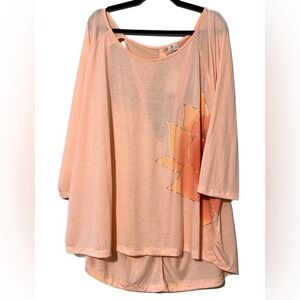 CATO Active womens sz 26/28W activewear top floral peach 3/4 sleeves cutout back