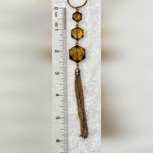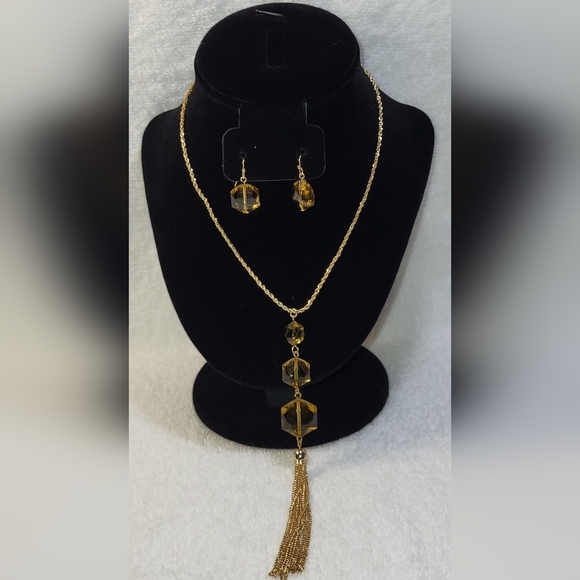 CATO Amber and Gold Tassled Necklace and Drop Earrings Set / Pierced
