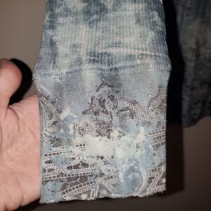 CATO BLUE GREEN WHITE RHINESTONE GRAPHIC LONG SLEEVE THERMAL SIZE MEDIUM