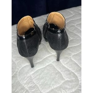 CATO Black Heels Open Toe Bootie Faux Suede Textured Heel Side Zip Sz. 7 Heels 3.5 inches high