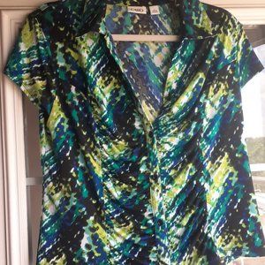 CATO Black, Turquoise, Green Women's Top Blouse Shirt - Size Large