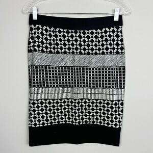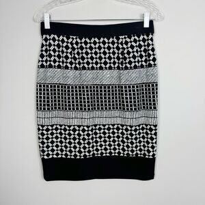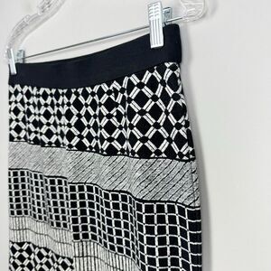 Nice black and white pencil skirt by Cato. Pull on. Stretchy. Several different prints blocked in stripes. Perfect for work or a date night. Great preowned condition. Women’s size small.