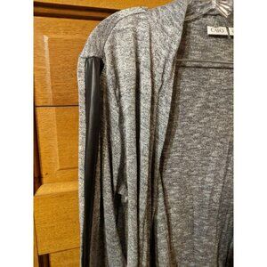 CATO Blazer Jacket Cover-up Size XL Long Sleeve Open Faux Leather Career Gray