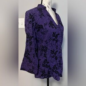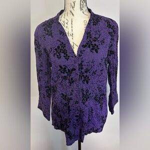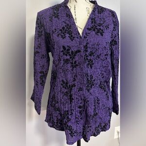 π CATO Plus-Size Blouse - Purple with Black Floral Accent π