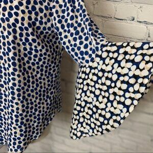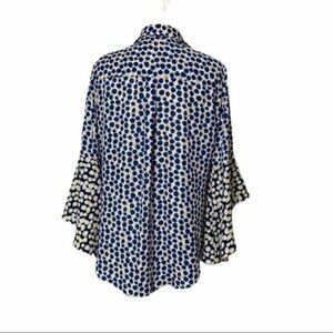 CATO Blue Beige Polka Dot Bell Sleeve Top