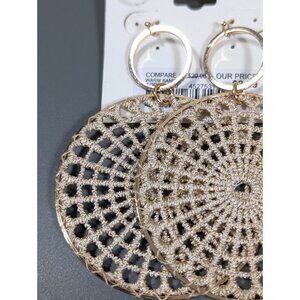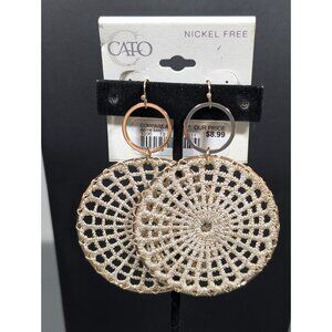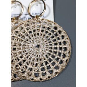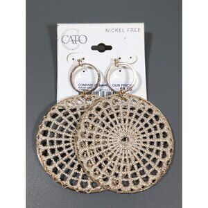 CATO Boho Crochet Medallion Round Bold Runway Earrings Boho Gold Tone