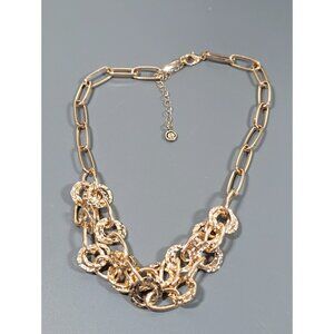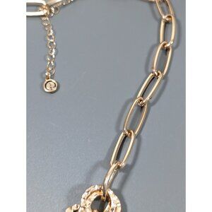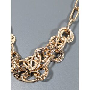 CATO C1946 Gold Tone Hammered Round Disc Oval Chain Layered Necklace 21 in