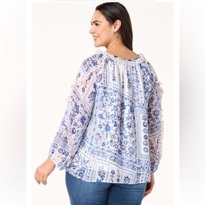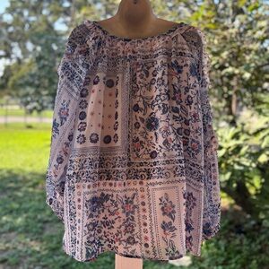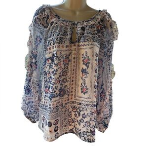 CATO Coastal Cowgirl Pitch Navy Floral Tile Poet Print Women's Top Size XL