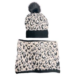 CATO Dusty Pink Cheetah Print Winter Beanie Neck Scarf Set. With stretch. women’s one size.