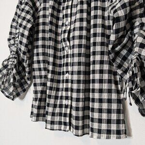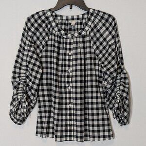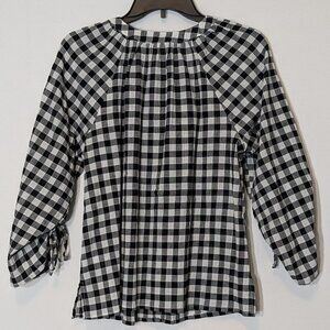 CATO Est 1946, Black & White Check Button Peasant Top; 3/4 Sleeves; Size XS