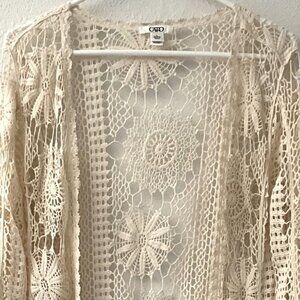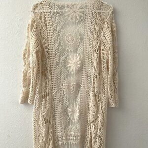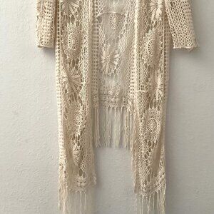 CATO FLORAL CROCHET LACE FRINGE BOHO OPEN FRONT CARDIGAN