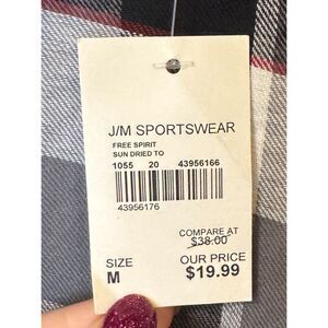 CATO Grey Red Plaid Open Front Cardigan Cotton Vest Women's Size Medium Raw Hem