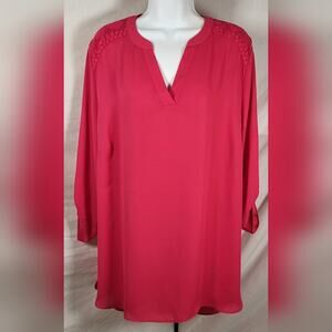 Cato Women’s Hot Pink Lace Shoulder Split Neck Blouse Size 18/20W