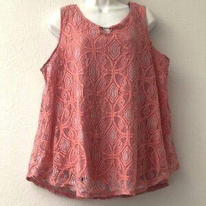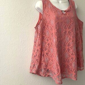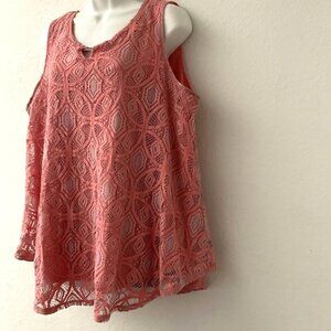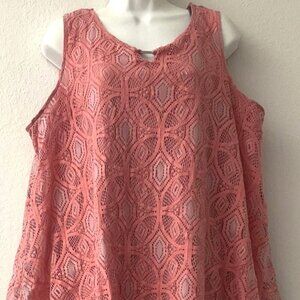 CATO LACE OVERLAY CORAL PLUS TOP 18/20W EUC (Flaws)