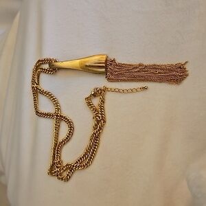 CATO Long Goldtone Tassel Chain Pendant Sweater Necklace