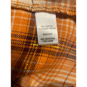 ""CATO Orange Check Plaid Long Sleeve Casual Button Down Shirt Women's SZ M""