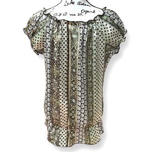 CATO Paisley Ruffled Short Sleeve Blouse Size S