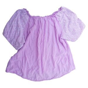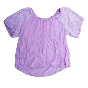 CATO Plus Size 22 24W Wide Neck Lavender Linen Rayon Mix Top with Embroidery