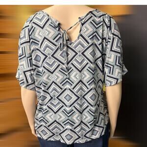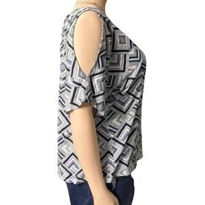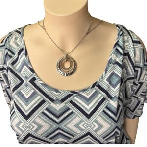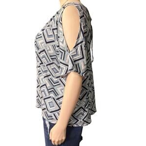 CATO Short Sleeve Cold Shoulder Top Size 2x in Teal Green, White, and Blue