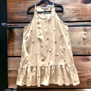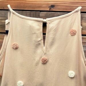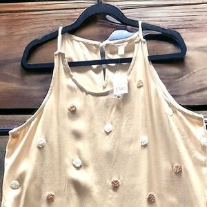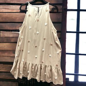 New CATO Taupe Mauve Sundress Swing Style With Pockets And Fluff Poms. Womens XL, Pit to Pit 23 across, Shoulder to hem 39