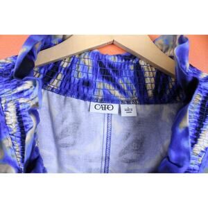 CATO Tie Dye Jacket Women's Large Ruffled Button Front Designer Cotton Blend