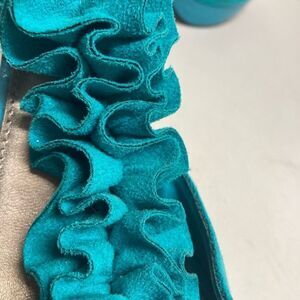 CATO Turquoise Ruffle Strap Hook & Loop Peep Toe Heels Size 7