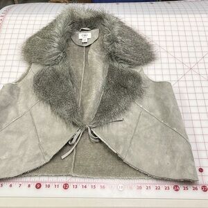 CATO WOMAN Boho Faux Shearling Faux Fur Collar Boho Western Grey Vest SZ 26/28W