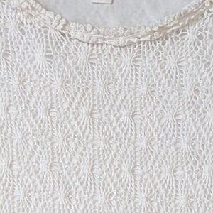 CATO WOMAN White Crochet Lace Pullover Top w Sheer Chiffon Flared Sleeves