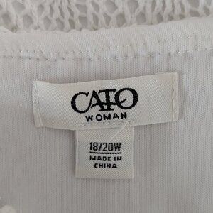 CATO WOMAN White Lace Pullover Top w Sheer Chiffon Flared Sleeves; Size 18/20W