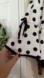 Soft, comfy, v-neck, lightweight textured fabric, 3/4 length bell sleeves with bows, top. Cato brand size large. This top is a cute polka dot pattern, solid white with medium size solid black dots. Black trim around neckline and sleeves. Cute tie bows. This top is perfect for career or casual. This was worn 1-2 times, washed carefully and line dried.